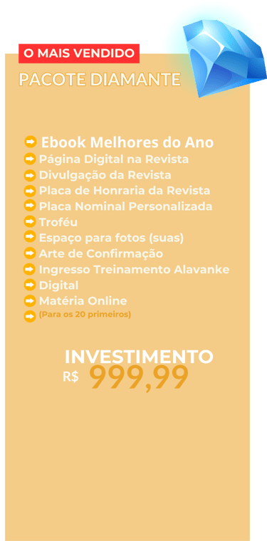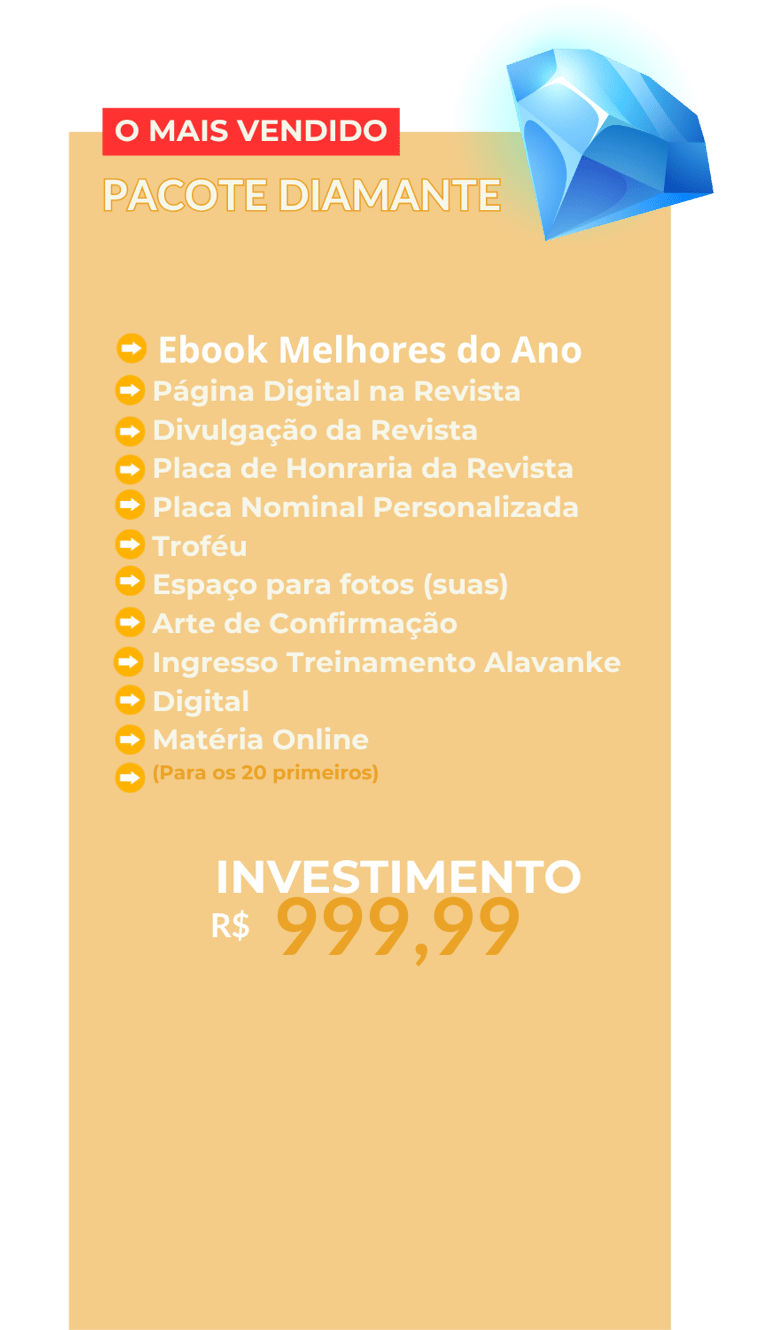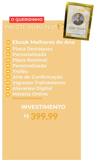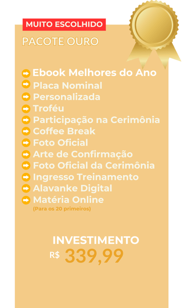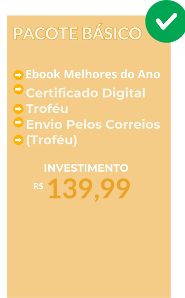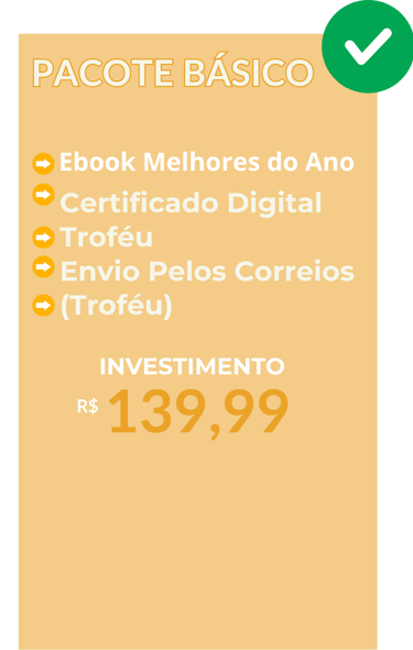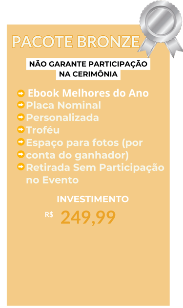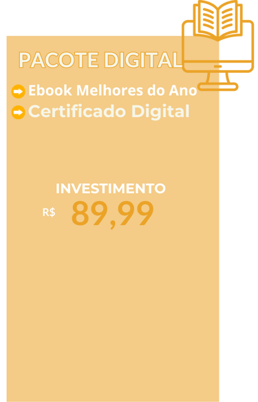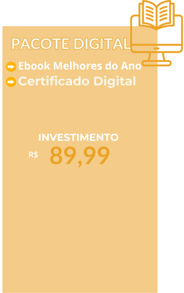** Todos os pacotes iniciam com a aquisição do e-book. - O e-book é o produto principal e obrigatório, ele é o ponto de partida para sua participação no Prêmio Melhores do Ano.